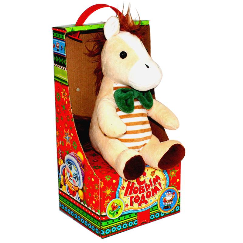Сладкий новогодний подарок в картонной упаковке с мягкой игрушкой весом 294 грамм