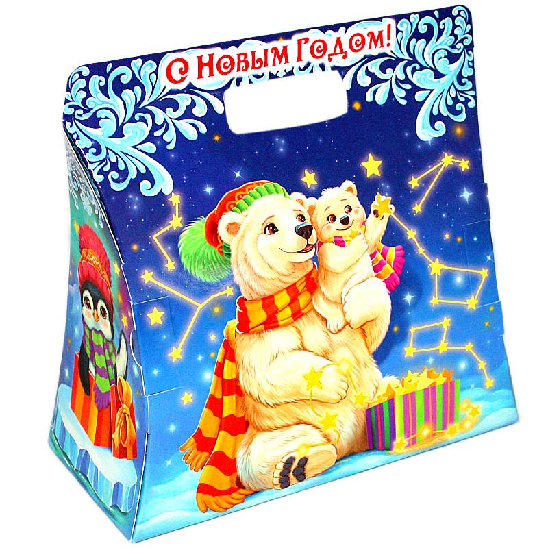 Сладкий новогодний подарок в картонной упаковке весом 1000 грамм