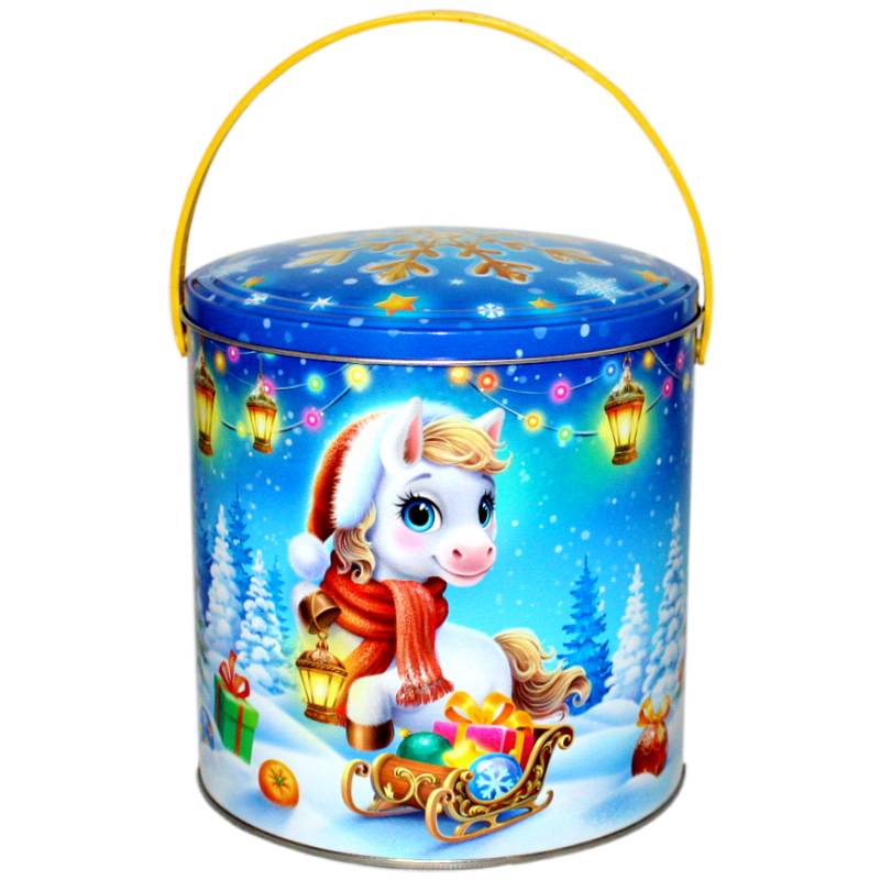 Сладкий подарок на Новый Год в жестяной упаковке весом 1000 грамм