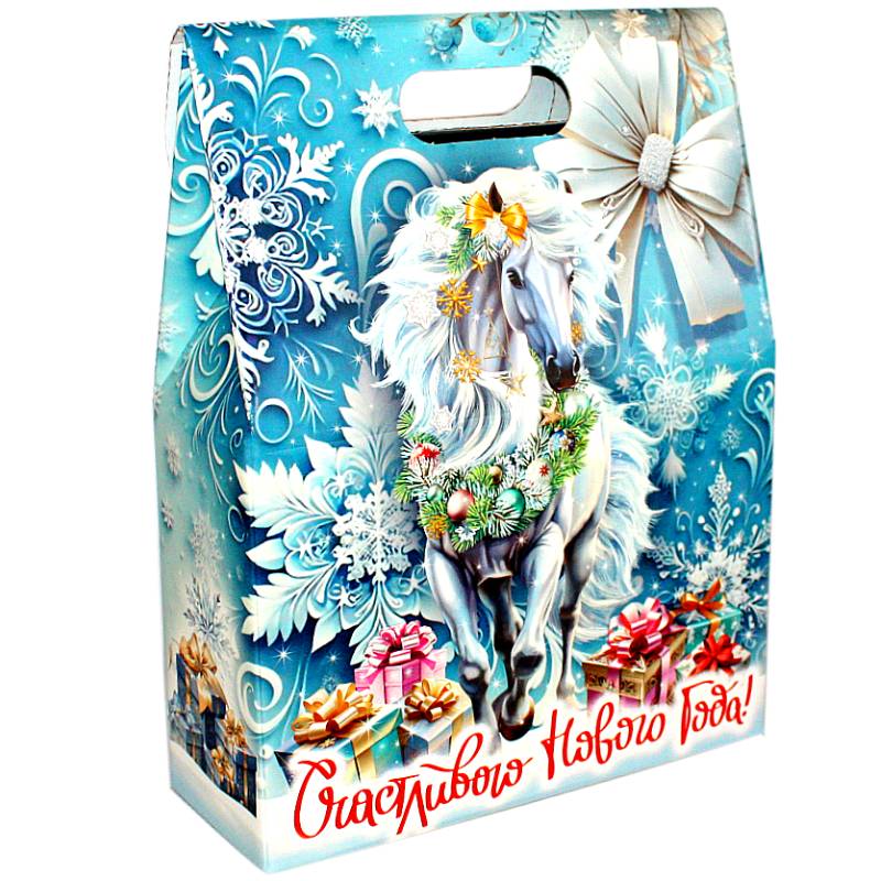 Детский новогодний подарок в картонной упаковке весом 1200 грамм