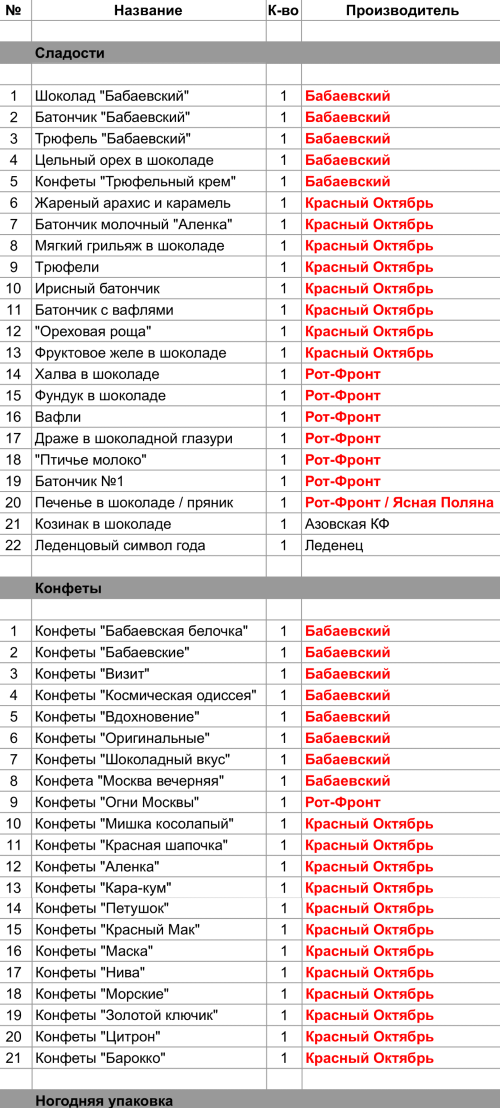 Опубликовано в Составы подарков