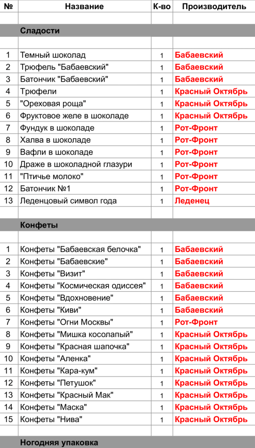 Опубликовано в Составы подарков