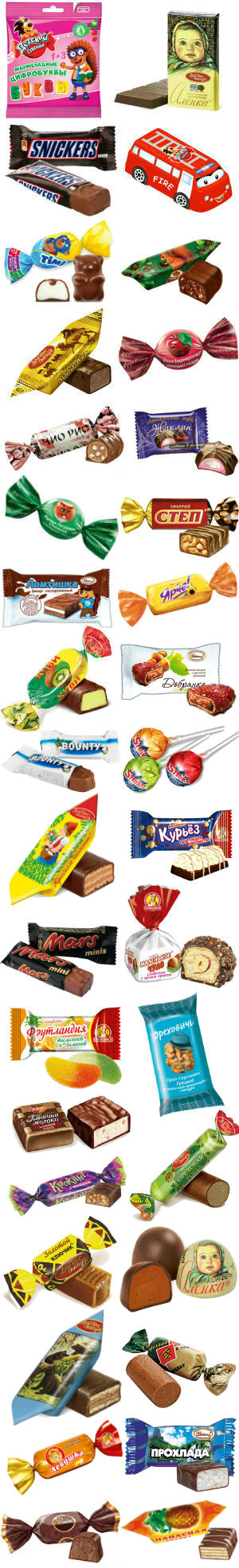 Десерт с печеньем (1 шт), Конфеты "Маленькое чудо" (1 шт), Зефир в шоколаде "Жаклин" (1 шт), Жевательный мармелад (1 шт), Конфеты "Левушка детям" (1 шт), Конфеты "Авторалли" (1 шт), Конфеты "Золотой степ" (1 шт), Конфеты "Ананасная долина" (1 шт), Конфеты "Фрутландия" (1 шт) ,Конфеты "Левушка" (1 шт)