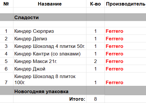 Опубликовано в Составы подарков